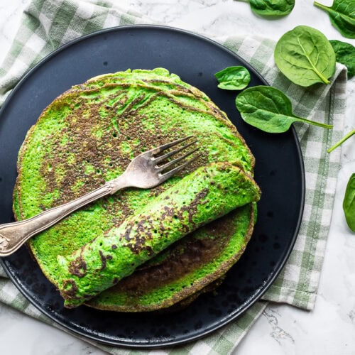 Steg pandekagerne i olivenolie ved godt og vel middelvarme. Jeg bruger en medium pande (ca. 20 cm i diameter).