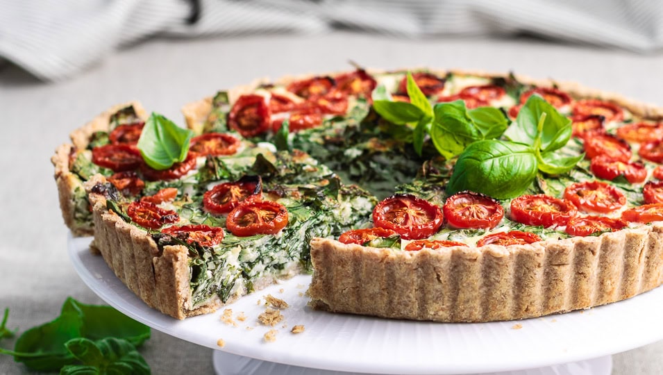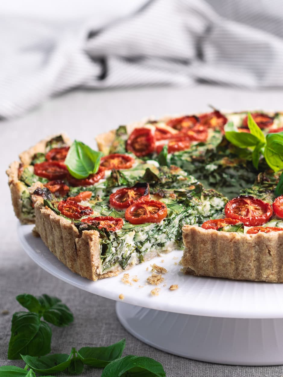 Vil du ha’ en frisk vegetarisk madtærte, er spinattærten et rigtig godt bud. Den er nem at lave, du får godt med protein og frisk grønt i din tærte, og den smager virkelig dejligt, også af tomater, basilikum og parmesan.
