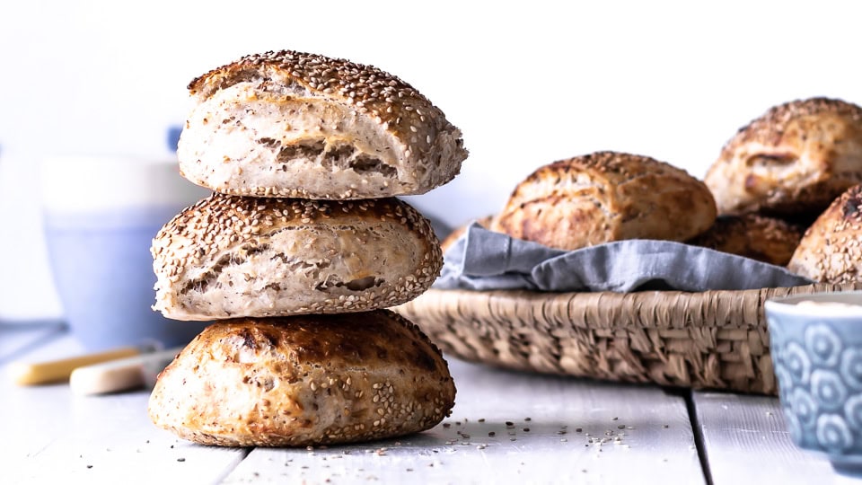 Surdejsboller er nok det bedste, der er sket i min brødbagning i – en evighed eller måske bare altid. Surdej giver så meget smag, brødets krumme bliver super sej og saftig på den helt rigtig emåde, og derudover er surdejsbrød bare nemmere at fordøje end almindeligt gærbrød.